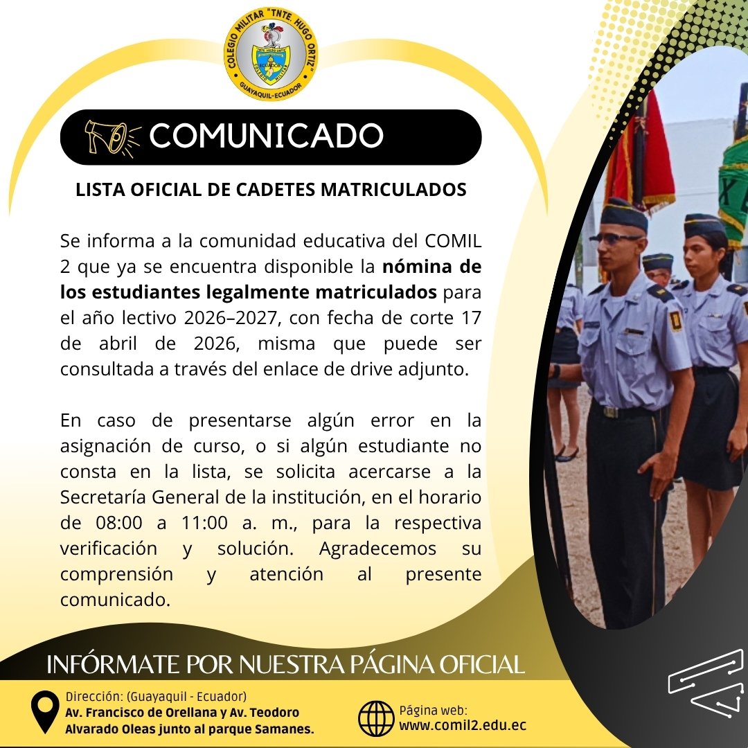 LISTA OFICIAL DE CADETES MATRICULADOS