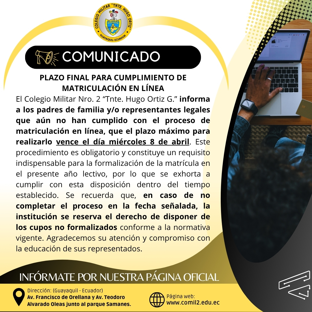 PLAZO FINAL PARA CUMPLIMIENTO DE MATRICULACIÓN EN LÍNEA