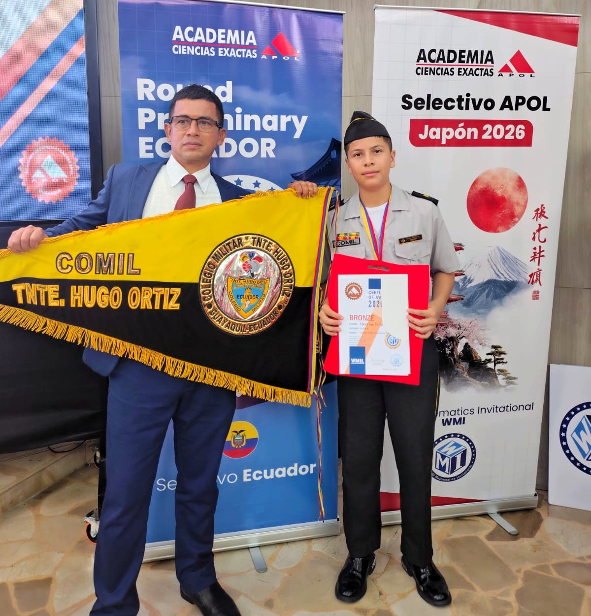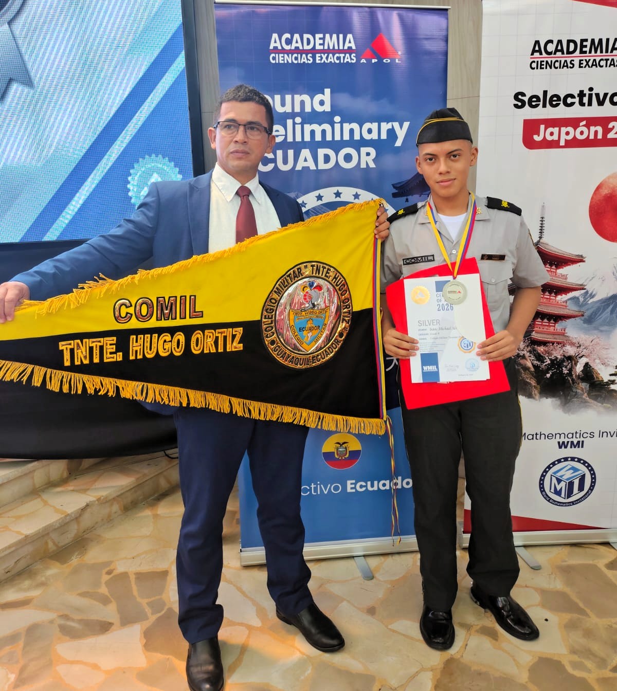 El esfuerzo, la disciplina y la excelencia académica de tres cadetes del Colegio Militar N.° 2 “Tnte. Hugo Ortiz G.” fueron reconocidos en la ceremonia de premiación del selectivo internacional de las olimpiadas World Mathematics Invitational (WMI) Japón 2026, un evento que destaca a estudiantes con alto nivel en matemáticas y proyecta su participación en competencias de alcance global.